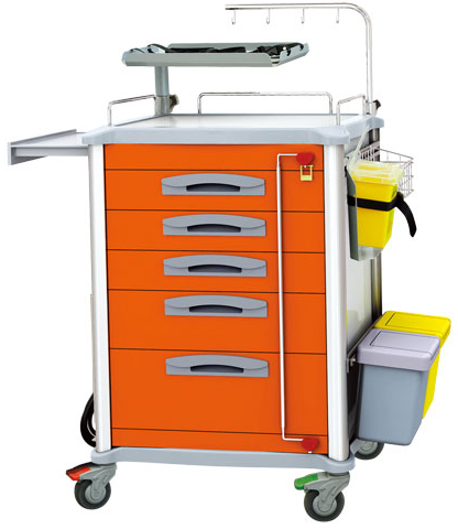 7.標(biāo)準(zhǔn)配件:碳鋼儀器平臺、ABS側(cè)拉板、L型輸液架、銳器盒支架、翻蓋污物桶、一次性鎖桿、不銹鋼雜物筐、CPR板、電源插板、ABS抽屜隔板、氧氣瓶支架。